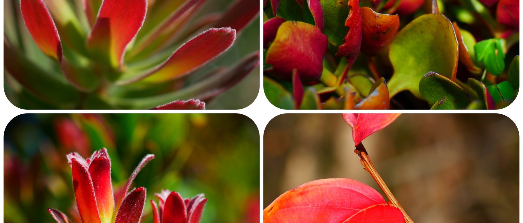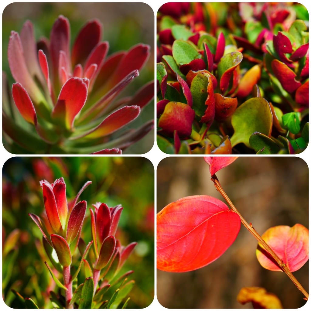 Plants with reddish autumn leaves due to the drop in temperature. The colouring of autumn leaves helps to protect trees from harmful substances.