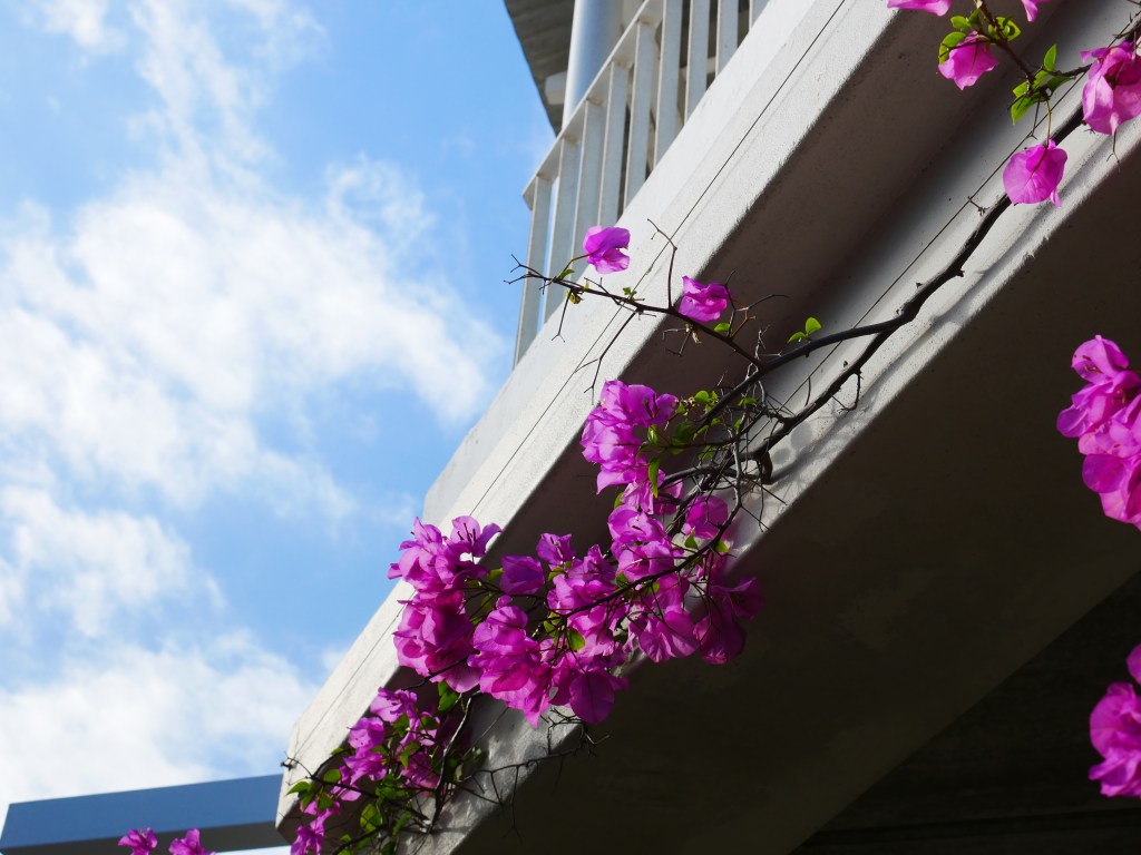 Like a flower blooming towards the sky, look up and smile at the sky.