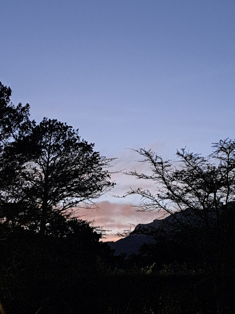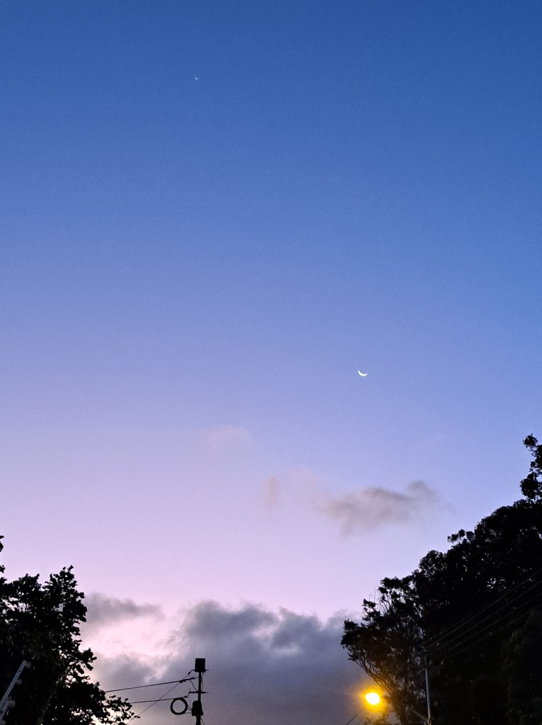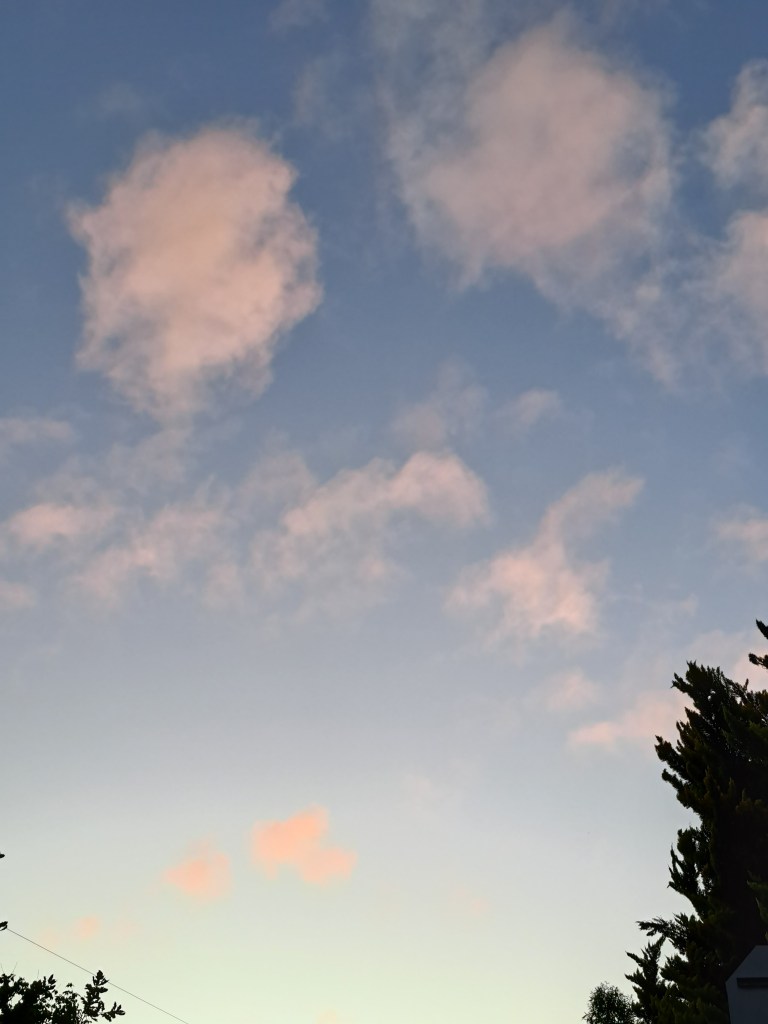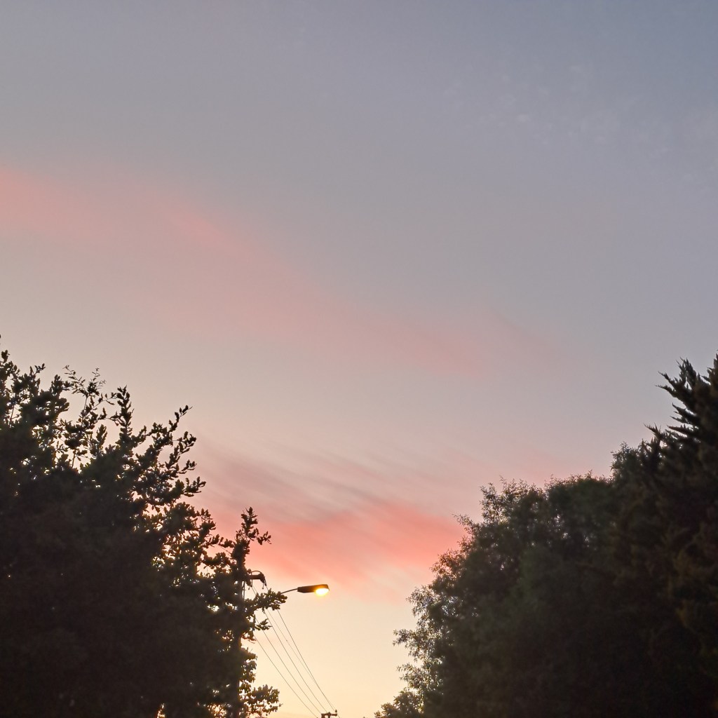 Morning with a pale pink sky. I smile at the sky, thinking of you. The colour of love between you and me. Good morning.