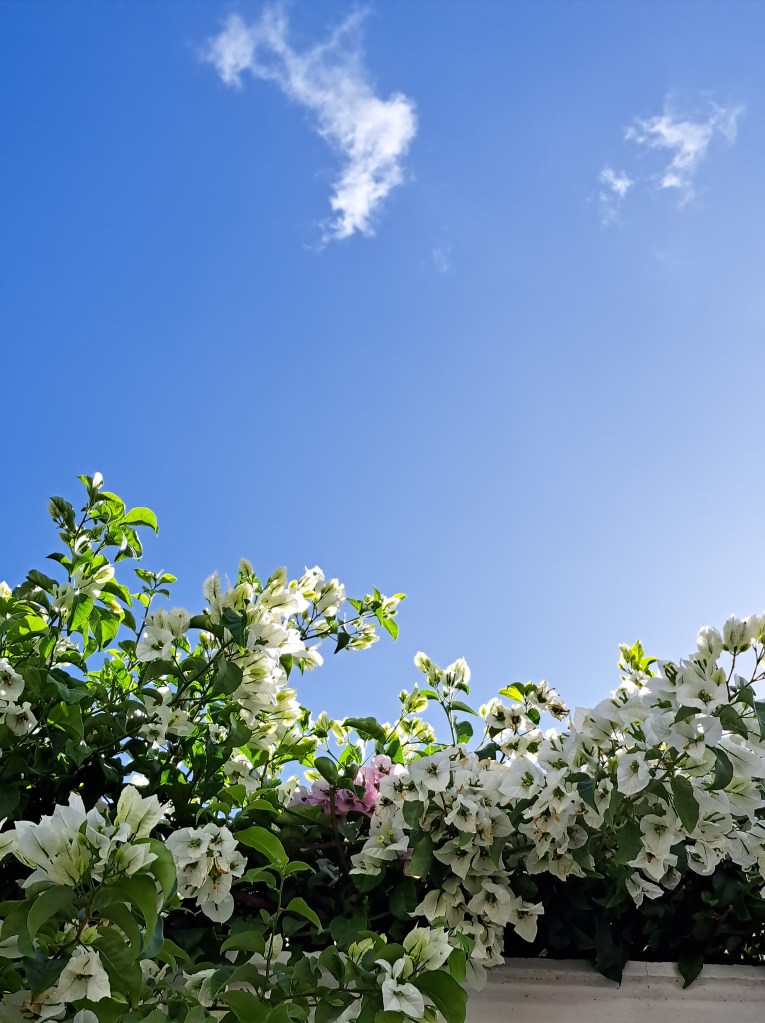 I love blue skies. The sky brightens and opens my heart. The sky connects me to my loved ones who are far away. The sky gives me hope, courage and possibility. That’s why I love the blue, wide sky.