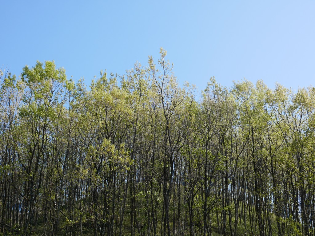 Look up at the sky and see blue skies and fresh green splendour